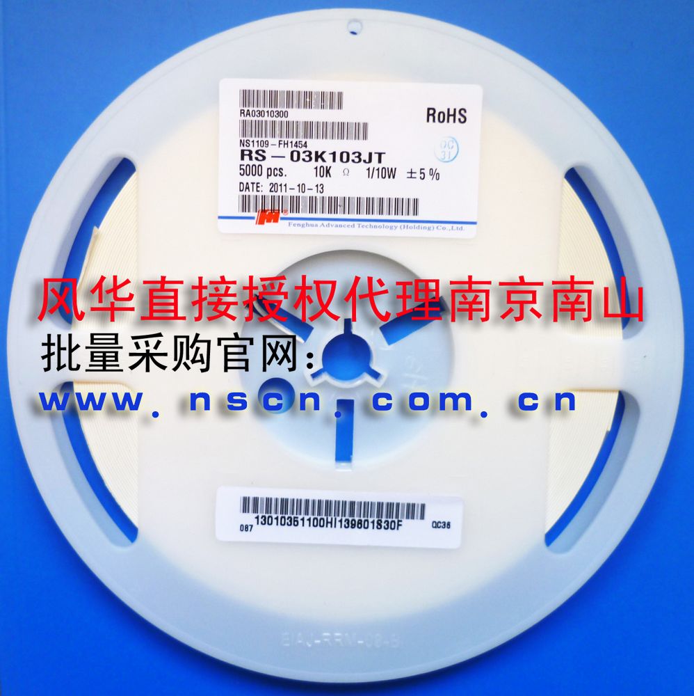 風華高科(FH)代理商南京南山半導體有限公司代理供應(yīng)風華高科(FH)常規(guī)貼片電阻全系列產(chǎn)品。風華貼片電阻規(guī)格型號RS-03K103JT是阻值10KRR0603封裝J(5%)精度的常規(guī)型號。南京南山半導體在南京總部和深圳備有大量現(xiàn)貨庫存,歡迎撥打風華代理南京南山全國咨詢服務(wù)電話或咨詢在線客服。