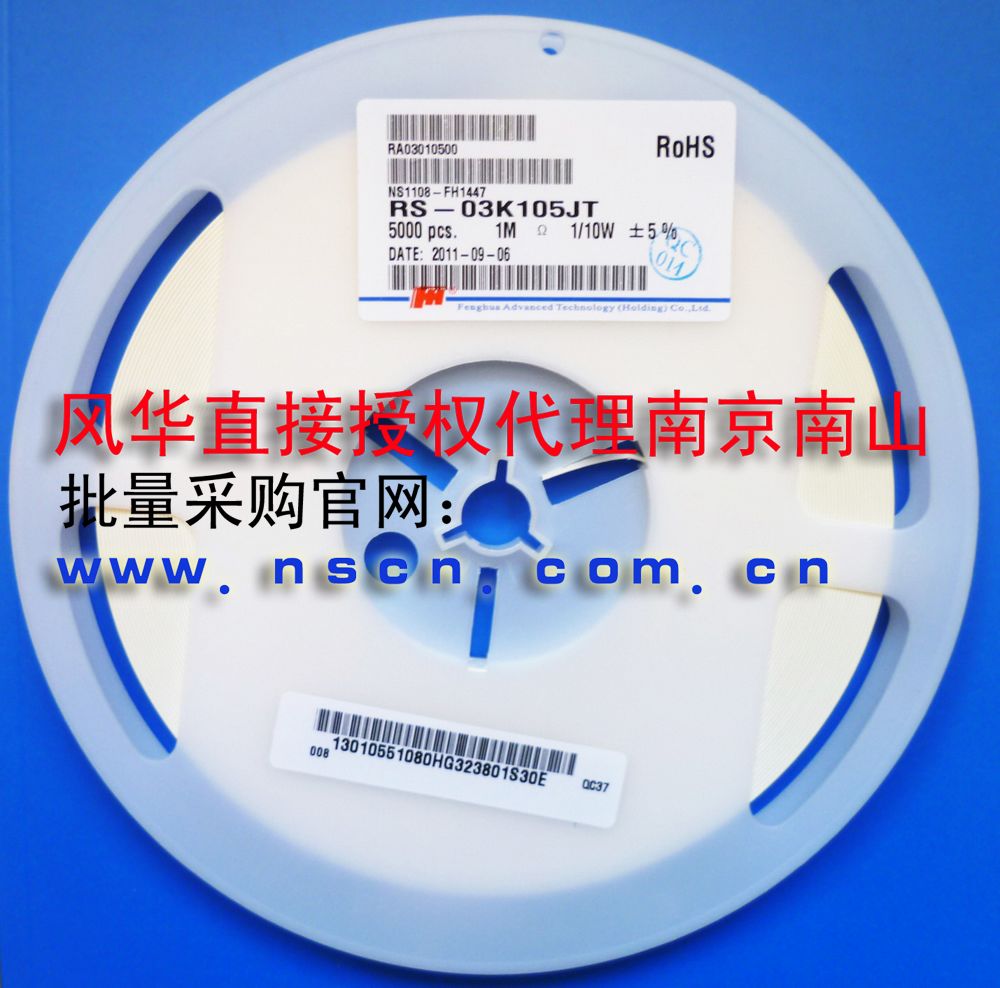 風(fēng)華高科(FH)代理商南京南山半導(dǎo)體有限公司代理供應(yīng)風(fēng)華高科(FH)常規(guī)貼片電阻全系列產(chǎn)品。風(fēng)華貼片電阻規(guī)格型號RS-03K105JT是阻值1MRR0603封裝J(5%)精度的常規(guī)型號。南京南山半導(dǎo)體在南京總部和深圳備有大量現(xiàn)貨庫存,歡迎撥打風(fēng)華代理南京南山全國咨詢服務(wù)電話或咨詢在線客服。
