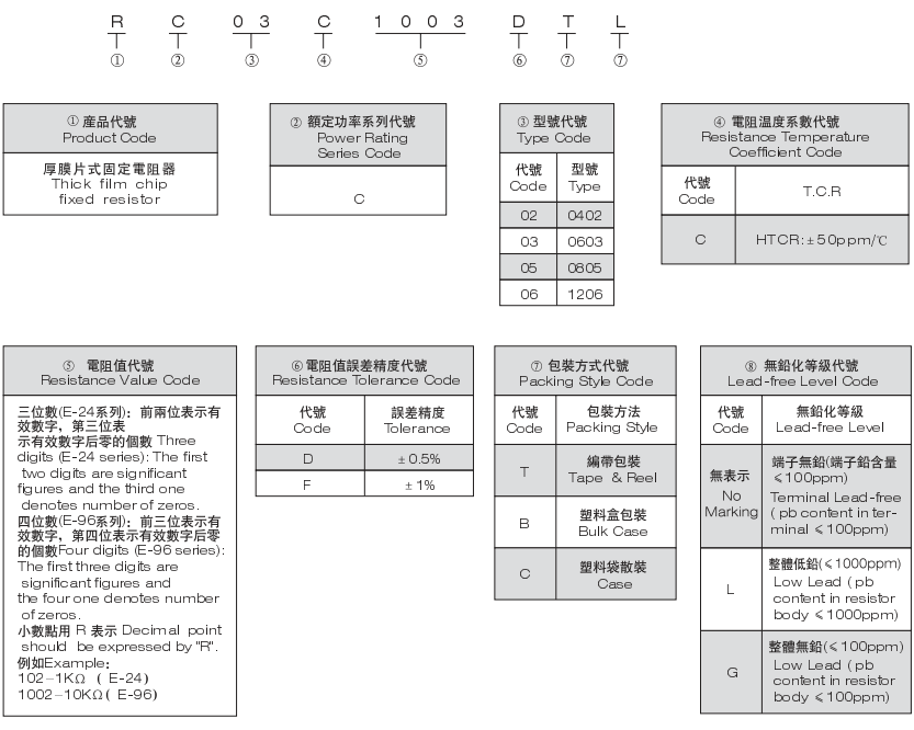 風(fēng)華對高精度貼片電阻的規(guī)格命名與普通厚膜貼片電阻有一定的區(qū)別,下面,我們通過具體型號作為例子來說明風(fēng)華該系列電阻的規(guī)格和命名規(guī)則: