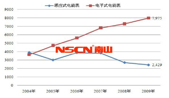 據(jù)中國儀器儀表行業(yè)協(xié)會電工 儀器儀表分會統(tǒng)計,2005年電子式電能表產(chǎn)量達(dá)4,725萬臺,首次超過感應(yīng)式電能表產(chǎn)量,到2009年電子式電能表產(chǎn)量增至7,975萬臺,而感應(yīng)式 電能表產(chǎn)量降至2,429萬臺。2010年電工儀器儀表行業(yè)產(chǎn)量同比增長19%以上;銷售收入同比增長22%以上。