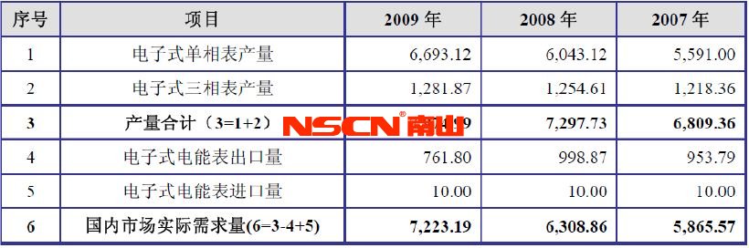 2007-2009年國內(nèi)市場電表供需情況表