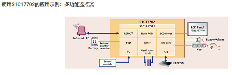 16位微處理器之S1C17000 / 500系列,這是一款低功耗16位微處理器,集成了ROM,RAM,遠(yuǎn)程控制器電路,各種I / F和定時(shí)器功能。它適用于便攜式設(shè)備內(nèi)置的傳感器系統(tǒng)。