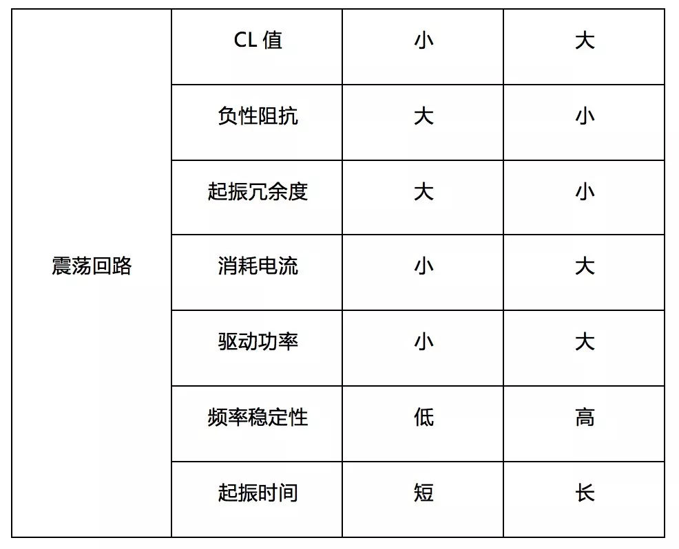 負(fù)載電容是一個(gè)重要的指標(biāo)。對于實(shí)際情況,小負(fù)載電容值CL(7.0pf)相對于大負(fù)載電容值的晶體來說,是更容易起震的,也有更小的電流損耗。但是頻率穩(wěn)定度會(huì)差一些,可以參考下表: