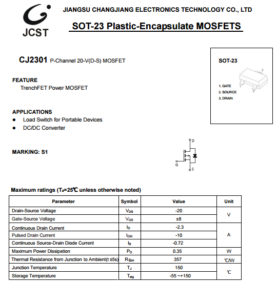 2. 其次就是cj2301是否可以替代cj2302呢?就像上面那位老客戶所說的,cj2302的*大允許電流小于cj2301,擊穿電壓相同,他覺得可以替代,可是這位采購忽略了一點:cj2302N溝道,cj2301P溝道。如果要替換要把原理搞清楚,如果是做開關管用,打開方式是控制柵極電壓,N溝道需要Vgs大于導通電壓時管子才導通,換成P溝道則相反,需要Vgs小于導通電壓,漏源兩極才導通。柵極無電壓時N溝道是常開的,P溝道是常閉的。建議*秀不要替換,沒搞好管子肯定燒壞,還好他之前訂了cj2302,我們客服才能幫他分析并且拒絕了,要是他是新客戶,上來就要cj2302,那就搞錯了。下面南山電子給大家分享下cj2301cj2302規(guī)格書以供大家選型參考