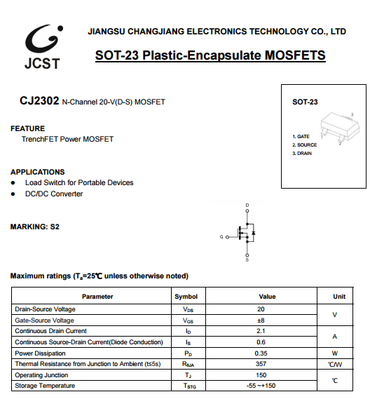 1.首先MOS管場效應管的作用主要有信號的轉換、控制電路的開關,這里我們講解的cj2301cj2302是MOS管作為開關管的使用。