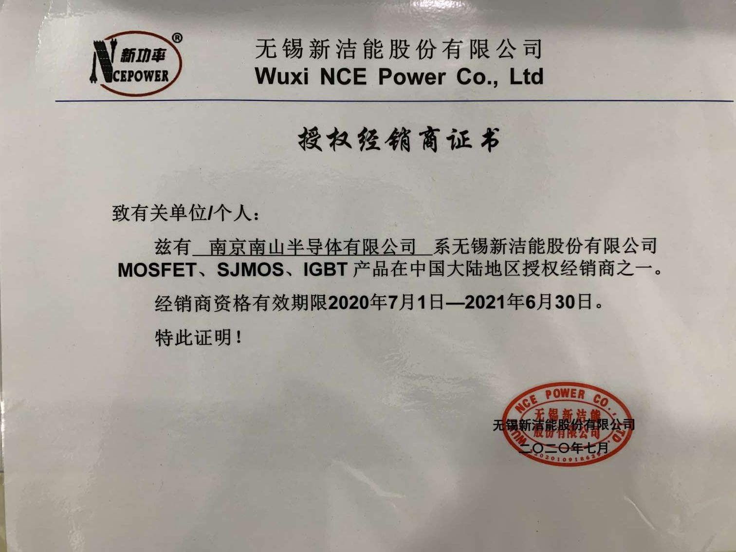 說實話,新潔能MOS管也算老牌國產客戶認知度較高的品牌,而我們南山電子老客戶們都知道,風華阻容感十七年老代理,長電長晶二三極管MOS管代理商,愛普生晶振核心代理商,2020年為了滿足更多客戶的需求,也為了擴寬我們的產品線,我們與新潔能深度合作,成為新潔能MOS管經銷商,雖然才合作,不能一步登天直接成為新潔能MOS管代理商,但是這只是開始,我們有信心很快成為新潔能代理商。下面是新潔能MOS管授權證書給大家看下
