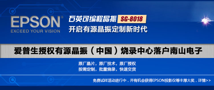 愛普生與南山電子共同為有新品開發(fā)和型號(hào)替換需求的用戶,免費(fèi)提供SG-8018系列石英可編程晶振樣品。