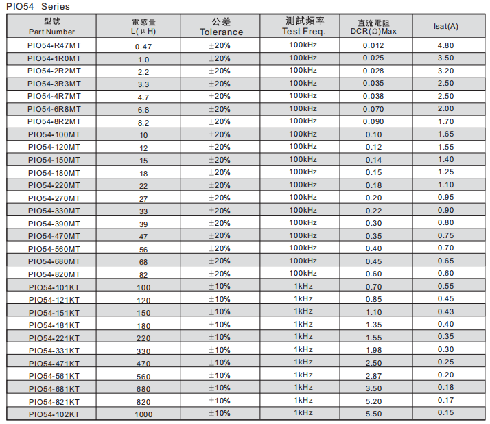 CD54電感,CD54功率電感選型資料指南