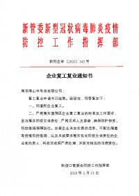 為支持重點客戶的有序生產(chǎn),南京南山半導體有限公司于2020年2月13日收到南京市新街口管理委員會(新管委)新型冠狀病毒肺炎疫情 防控工作指揮部通知,在2月14日復(fù)工。 暫定工作時...