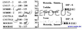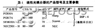  線性光耦合器的典型產(chǎn)品及主要參數(shù)見表1,這些光耦均以光敏三極管作為接收管。