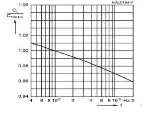 電解電容的容量隨著測(cè)試頻率的升高而降低。電解電容容量-頻率特性曲線如下圖所示: