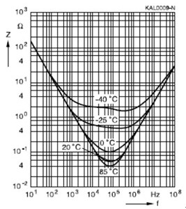阻抗Z的頻率溫度特性曲線如下圖所示: