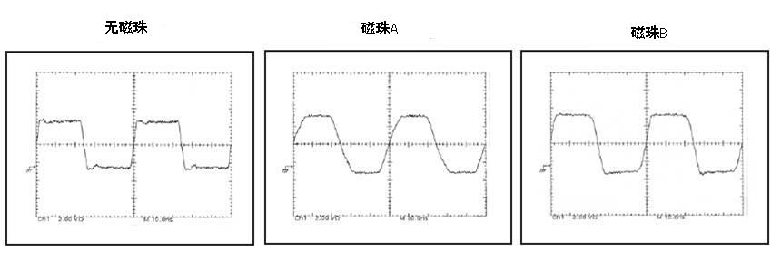 下面是用示波器分別量測(cè)磁珠輸出端的波形圖