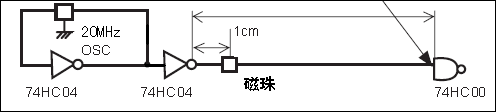 我們將兩個(gè)磁珠分別放在如下的20MHz的信號(hào)線上,看看對(duì)信號(hào)輸出會(huì)產(chǎn)生什么樣的影響。
