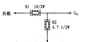 因熔斷電阻器是具有保護功能的電阻器,選用時應(yīng)考慮其雙重性能。根據(jù)電路的具體要求選擇其阻值和功率等參數(shù),既要保證它在過電流時能快速熔斷,又要保證它在正常條件下,能長期穩(wěn)定的工作。在更換此電阻時,與原來的電阻值和額定功率(瓦數(shù))絕對要相同,電阻值及功率過大或過小,均起不到保護作用。下圖中的電阻用的是熔斷電阻器,其作用是:從電源分配到各部分電路的連接電阻,作為短路保護(起保險管作用)的電阻。